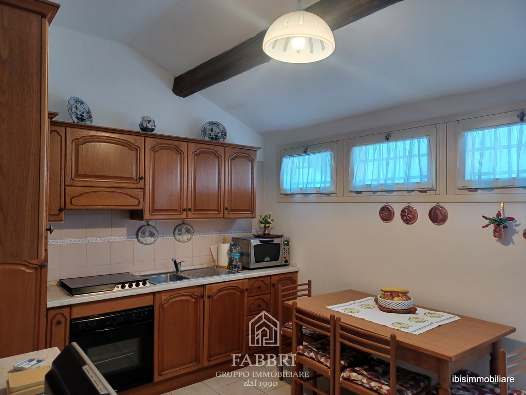 La cucina abitabile, pensata per gli amanti della gastronomia, è dotata di ogni comfort e include un piccolo terrazzino, ideale per un caffè mattutino all’aria aperta, e una pratica zona dispensa, che garantisce funzionalità e organizzazione ottimale.
