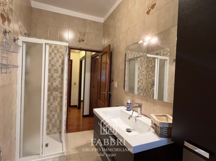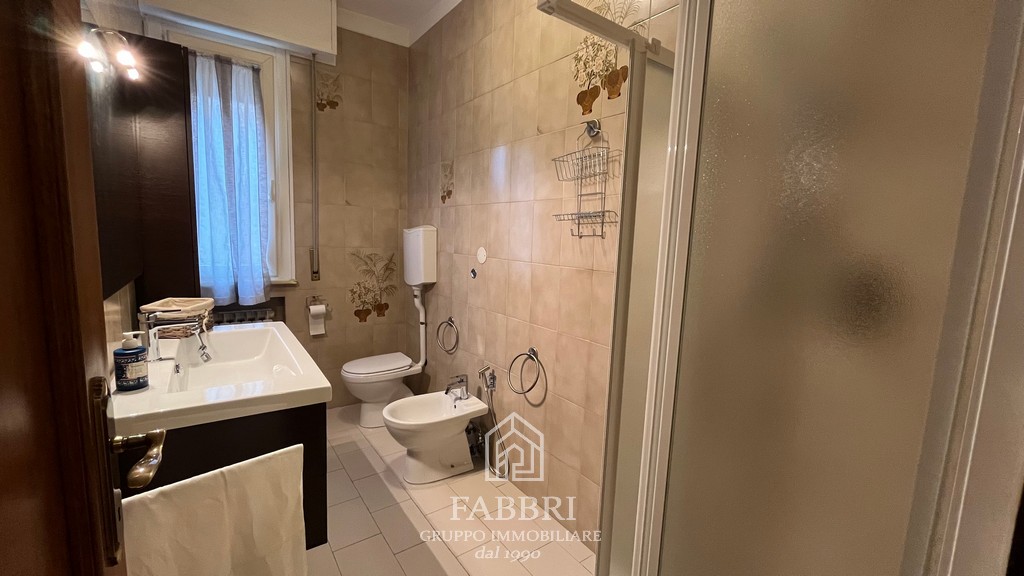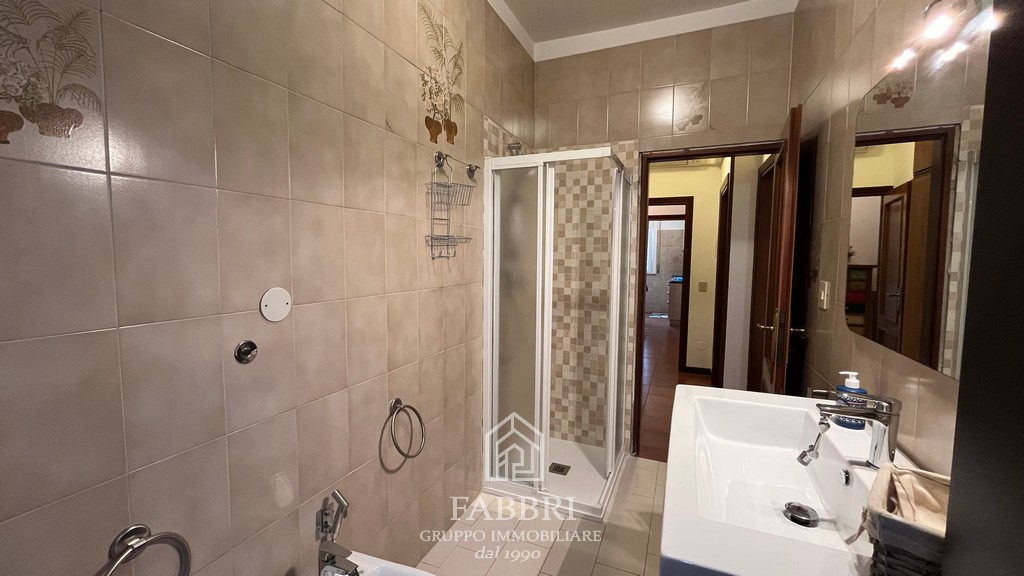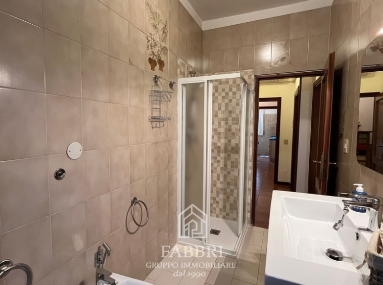 Bagno principale con doccia e sanitari nuovi, dal design moderno e funzionale.